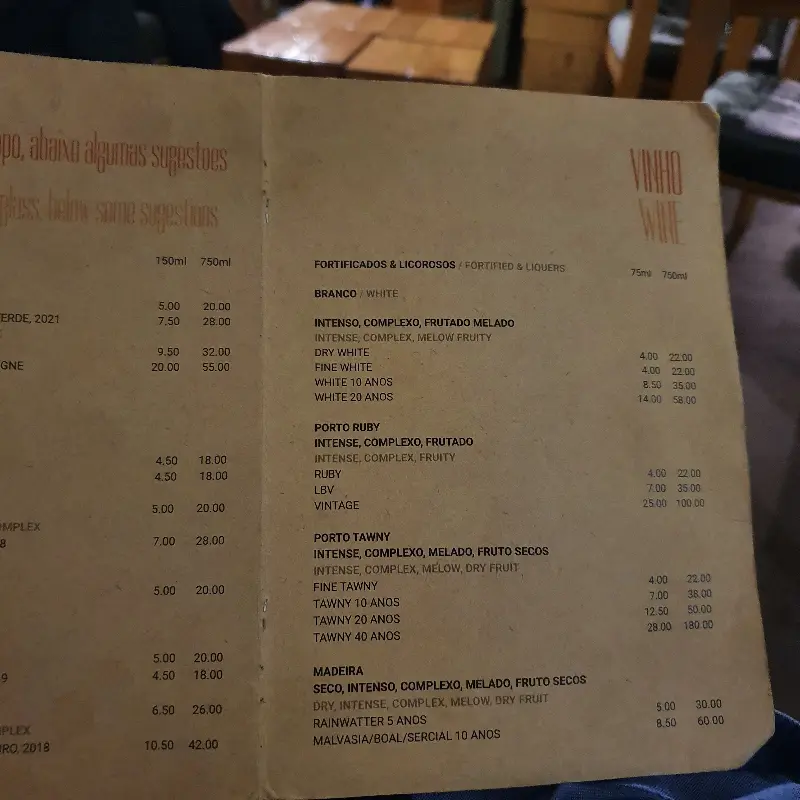 Douro Sentido에서는 다양한 종류의 포르투 와인을 맛볼 수 있다. 특히 10년산 포트 와인은 꼭 경험해봐야 할 메뉴다. 7유로라는 합리적인 가격에 부드럽고 깊은 풍미를 느낄 수 있다니, 이보다 더 좋을 수 있을까? 한 모금 머금는 순간, 입안 가득 퍼지는 달콤함과 은은한 과일 향이 온몸을 감싸는 듯하다.