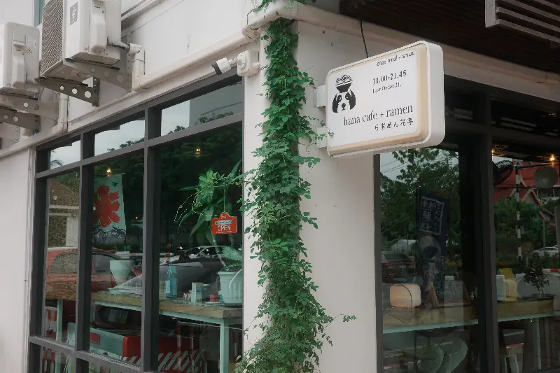 푸껫 올드타운의 활기 넘치는 거리를 걷다 보면, 이국적인 풍경 속에 숨겨진 작은 일본을 발견할 수 있습니다. 바로 숙소 바로 옆에 자리한 라멘 맛집, 그곳에서의 특별한 경험을 여러분과 나누고 싶습니다. 가게 입구는 푸켓의 강렬한 햇살을 막아주는 듯 짙은 녹색 덩굴 식물로 뒤덮여 있고, 그 옆으로 하얀색 사각 간판이 눈에 띕니다. 간판에는 귀여운 캐릭터와 함께 ‘라멘 카페’라는 문구가 적혀 있어, 이곳이 단순한 식당이 아닌, 편안한 분위기 속에서 맛있는 라멘을 즐길 수 있는 공간임을 짐작하게 합니다.