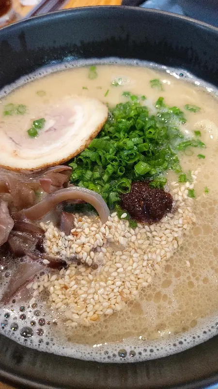 고민 끝에 선택한 메뉴는 와규 라멘. 일본에서 먹던 그 맛 그대로일까, 기대 반 설렘 반으로 기다렸습니다. 잠시 후, 김이 모락모락 피어오르는 와규 라멘이 눈앞에 놓였습니다. 진한 육수와 부드러운 와규, 그리고 신선한 토핑들이 조화롭게 어우러진 모습에 감탄사가 절로 나왔습니다. 국물 한 모금을 들이켜니, 돼지뼈를 제대로 우려낸 깊고 풍부한 맛이 입안 가득 퍼졌습니다. 면발은 쫄깃했고, 와규는 입에서 살살 녹았습니다.
