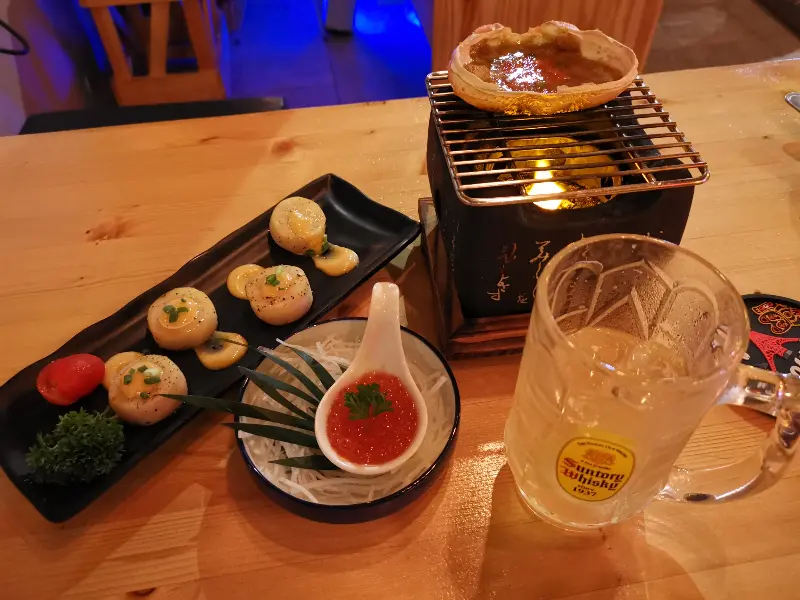 자리에 앉자마자 직원들의 친절한 미소가 나를 맞이했다. 테이블에 앉은 손님들끼리도 서로 인사를 나누는 훈훈한 분위기였다. 마치 오랜 단골들이 모여 담소를 나누는 듯한 편안함이 느껴졌다. 웨이터의 추천을 받아 메뉴를 찬찬히 살펴보았다. 다양한 일본 요리와 태국 음식까지, 선택의 폭이 넓어 행복한 고민에 빠졌다. 6년 전 리뷰에서 사장님이 “다음 달에는 더 좋은 프로모션이 많이 준비되어 있어요.”라고 답글을 남긴 것을 보니, 꾸준히 고객 만족을 위해 노력하는 곳이라는 믿음이 갔다.
