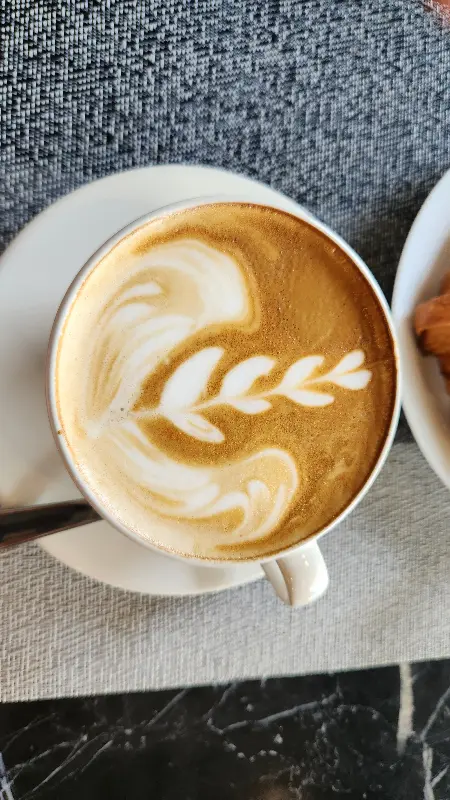 함께 주문한 라떼는 부드러운 우유 거품이 덮여 있고, 한 모금 마시니 진한 커피 향이 입안 가득 퍼집니다. 크로와상 한 입, 라떼 한 모금 번갈아 음미하니, 마치 작은 천국에 온 듯한 기분이 듭니다. 잼과 버터도 함께 제공되니 취향에 따라 곁들여 먹으면 더욱 풍성한 맛을 즐길 수 있습니다.