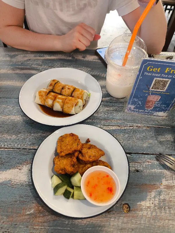 식사를 마친 후, 달콤한 디저트가 먹고 싶어 태국식 코코넛 크리스피롤을 주문했습니다. 바삭한 식감과 달콤한 코코넛 향이 어우러진 크리스피롤은 입안에서 사르르 녹았습니다. 특히, 따뜻한 커피와 함께 먹으니 더욱 맛있었고, 완벽한 식사의 마무리였습니다.