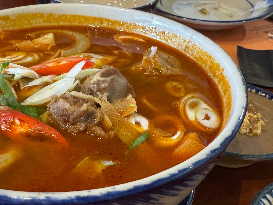 신라면보다 살짝 더 매운 정도의 얼큰함은 땀을 쏙 빼면서도 중독성 있는 시원함을 선사합니다. 시원하고 얼큰한 국물은 더운 날씨에 잊고 있던 입맛을 되살려주기에 충분합니다. 일반 쌀국수 역시 진하고 깔끔한 국물 맛으로 많은 사랑을 받으며, 호텔 쌀국수보다 맛있다는 평을 받을 정도로 수준 높은 맛을 자랑합니다.