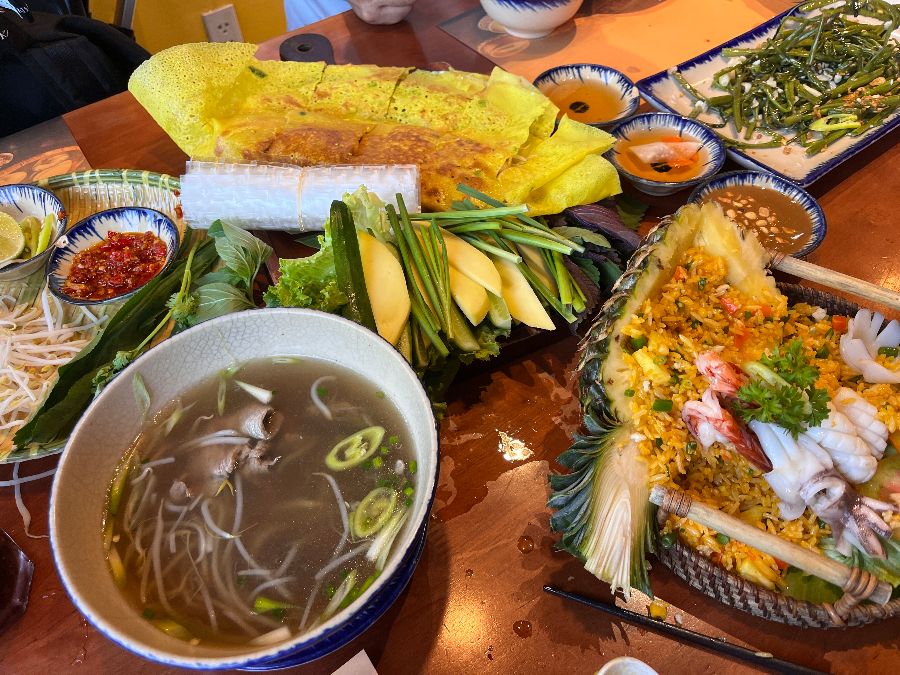 베트남 여행의 별미, 반쎄오는 껌냐 식당에서 놓칠 수 없는 메뉴입니다. 겉은 바삭하고 속은 촉촉한 반쎄오를 라이스페이퍼에 싸서 피쉬 소스에 찍어 먹는 순간, “여기가 바로 베트남이구나!” 하는 감탄사가 절로 나옵니다.