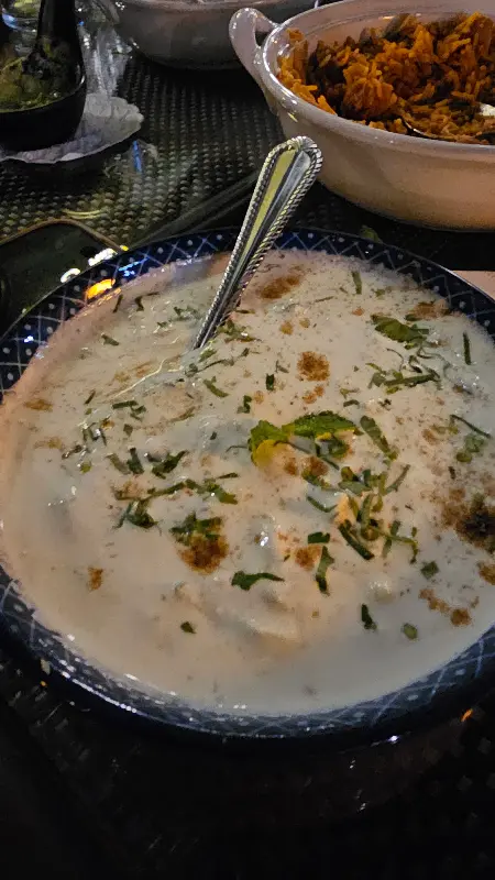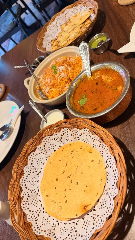 실제로 방문자들은 “조명 색깔과 장식 덕분에 들어서는 순간부터 마치 다른 세상에 온 것 같은 기분이 들었어요”라며 이곳의 독특한 분위기를 극찬한다. 사진 속 천장의 우산 장식은 볼리우드 영화의 화려함을 그대로 옮겨 놓은 듯하다. 이런 세심한 인테리어 덕분에 식사를 하는 동안 마치 인도 영화 속 주인공이 된 듯한 특별한 경험을 할 수 있다.