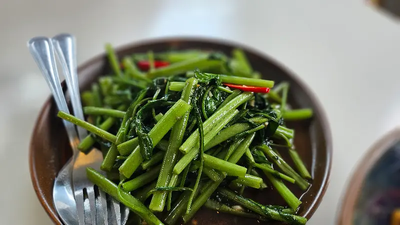 싱싱한 야채와 함께 볶아져 나온 모닝글로리는 아삭한 식감이 살아있습니다.