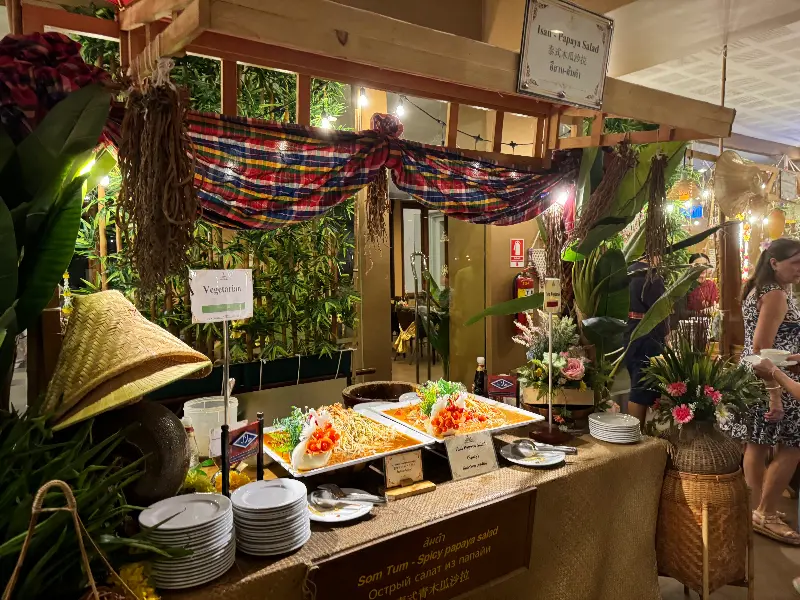 음식 종류는 정말 다양했다. 태국 음식은 물론, 중국 음식, 이탈리아 음식, 유럽 음식, 심지어 채식 요리까지 없는 게 없었다. 20여 가지의 채식 메뉴가 준비되어 있다는 점도 인상적이었다. 마치 세계 각국의 요리를 한자리에서 맛볼 수 있는 뷔페 같았다.
