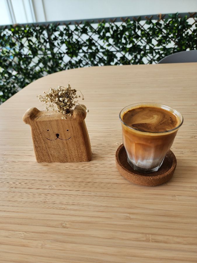 문을 열고 들어서는 순간, 후끈한 푸켓의 열기가 잊혀질 만큼 시원하고 쾌적한 공간이 눈 앞에 펼쳐졌다. 화이트 톤의 인테리어와 우드 가구의 조화는 편안함과 동시에 세련된 분위기를 자아냈다. 은은하게 퍼지는 커피 향은 기분 좋은 설렘을 더했다. 테이블마다 놓인 작은 화분과 아기자기한 소품들은 이곳이 얼마나 섬세하게 꾸며졌는지 짐작하게 했다.