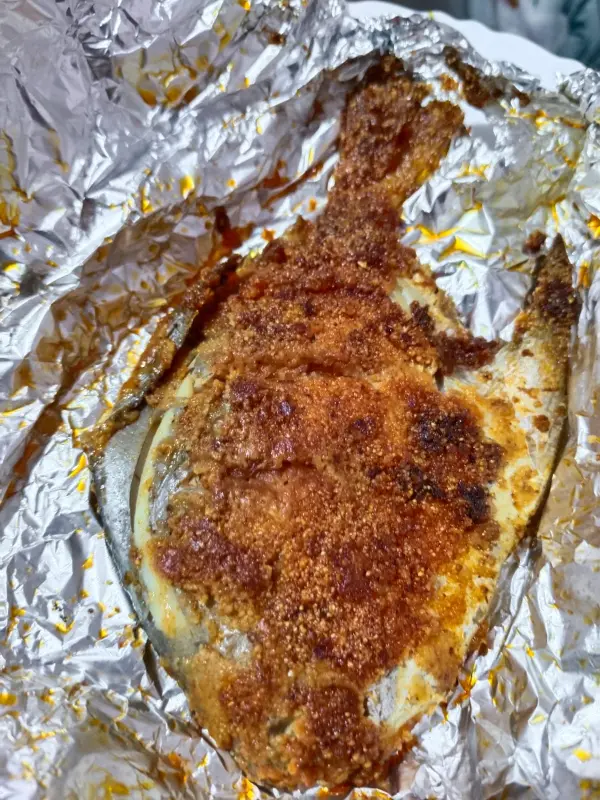 이미지 속 폼프렛은 겉은 바삭하고 속은 촉촉하게 튀겨져, 보기만 해도 군침이 돈다. 튀김옷의 황금빛 색감은 식욕을 자극하며, 전체적으로 먹음직스러운 느낌을 준다.