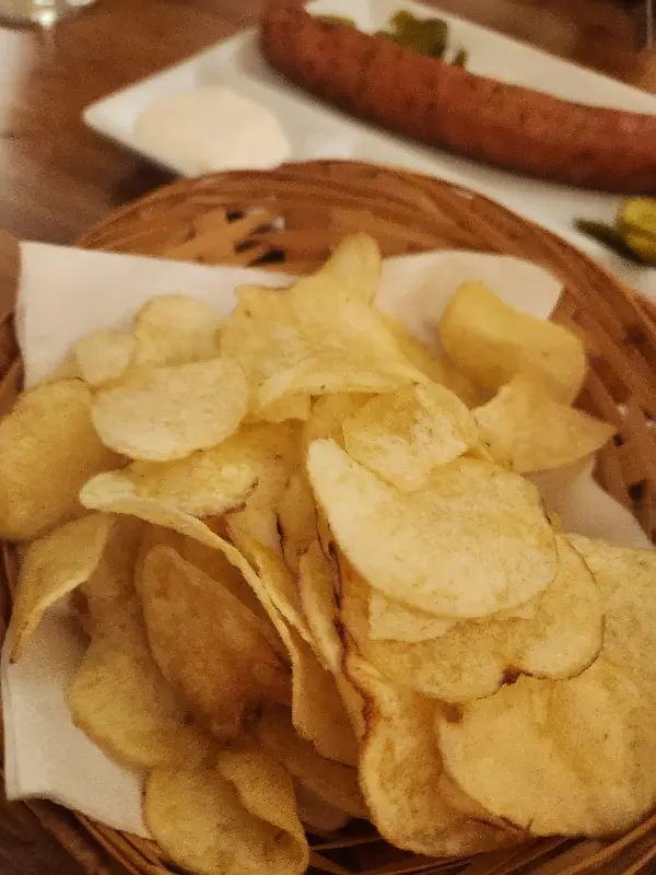 육즙 가득한 소시지는 짭짤하면서도 고소한 맛이 일품이었다. 특히, 함께 제공된 소스들과의 조화가 환상적이었다. 마요네즈, 머스타드, 케첩 등 다양한 소스에 찍어 먹으니 질릴 틈이 없었다. 바삭한 감자칩도 빼놓을 수 없었다. 짭짤한 감자칩은 맥주를 부르는 마성의 안주였다.