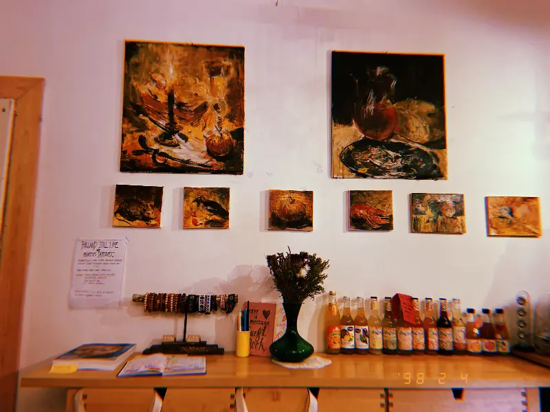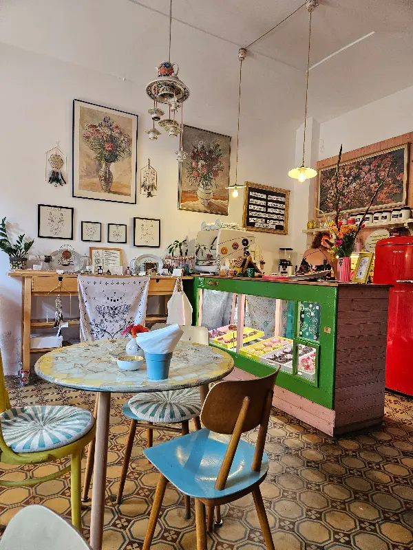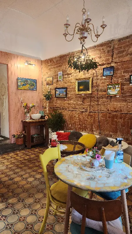 문을 열고 들어서자, 아늑하고 빈티지한 분위기가 물씬 풍겼다. 테이블은 서너 개 정도로 작은 공간이었지만, 화분과 아기자기한 소품들로 가득 채워져 있었다. 벽에는 앤티크한 액자들이 걸려있고, 은은한 조명이 공간을 따뜻하게 감쌌다. 마치 오래된 친구 집에 놀러 온 듯한 편안함이 느껴졌다.
