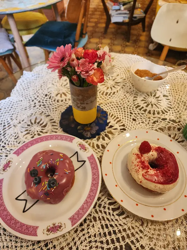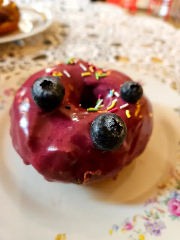 가장 먼저 맛본 것은 블루베리 도넛이었다. 쫄깃한 도넛 위에 달콤한 블루베리 크림이 듬뿍 올려져 있었다. 한 입 베어 무는 순간, 입안 가득 퍼지는 블루베리의 향긋함과 크림의 부드러움이 환상적인 조화를 이루었다.
