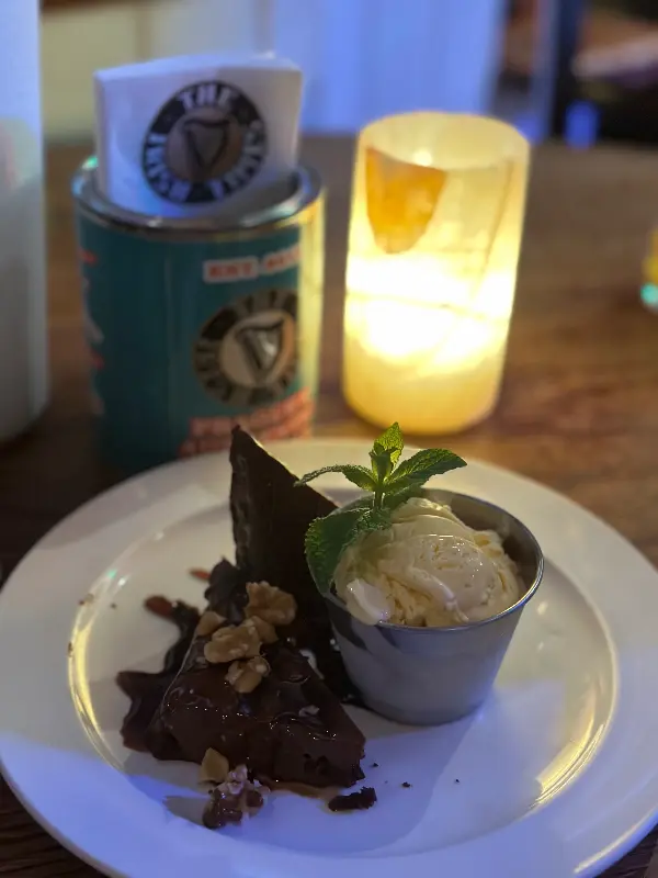 초콜릿 브라우니와 아이스크림의 달콤한 만남. 견과류가 고소함을 더합니다.