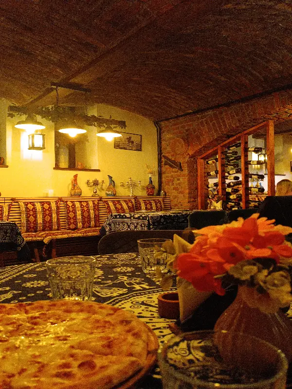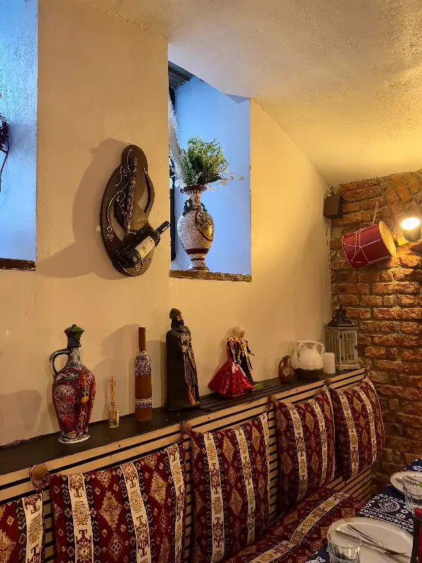 스타레 트빌리시는 맛뿐만 아니라 분위기 또한 훌륭했다. 아늑한 조명과 따뜻한 색감의 인테리어는 편안하고 아늑한 느낌을 주었다. 벽돌로 쌓아 올린 벽면은 빈티지한 매력을 더했고, 곳곳에 놓인 조지아 전통 소품들은 이국적인 분위기를 자아냈다. 사진(Image 5)에서 보이는 것처럼, 벽에 걸린 장식품들은 조지아의 문화를 엿볼 수 있게 해주었다.