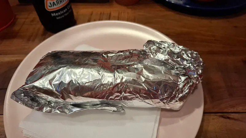 은박지에 싸여 나오는 따끈한 부리토. 포장도 정성스럽다.