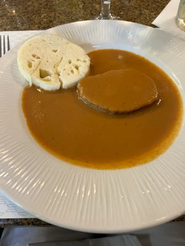 각 레스토랑에서 맛본 음식들은 하나하나 잊을 수 없는 맛이었다. 특히 인상 깊었던 것은 체코 전통 수프. 깊고 진한 육수와 신선한 채소가 어우러진 따뜻한 수프는 추운 날씨에 얼어붙었던 몸과 마음을 녹여주었다. 쫄깃한 면발과 매콤한 양념이 조화로운 요리는 한국인의 입맛에도 잘 맞아, 모두가 만족스러워했다. 조지의 추천 덕분에 평소에 시도해보지 않았을 음식들도 맛볼 수 있었는데, 그 맛은 기대 이상으로 훌륭했다.