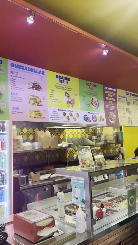 다양한 메뉴 옵션이 한눈에 보이는 메뉴판. 퀘사디아, 부리또, 샐러드 등 취향에 따라 선택 가능하다.