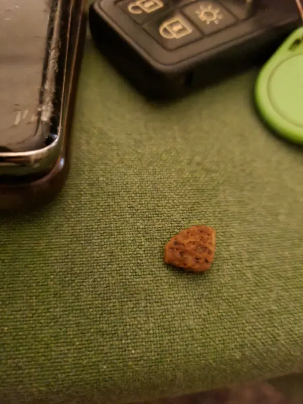음식에서 발견된 돌멩이. 과거 배달 주문에서 발생했던 문제점을 보여준다.