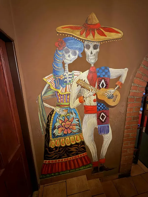 지하에 펼쳐진 공간은 예상과는 전혀 다른 분위기였다. 남부 특유의 키치한 인테리어가 시선을 사로잡았고, 멕시코를 상징하는 다채로운 색감과 소품들이 눈을 즐겁게 했다. 벽에는 해골 그림이 그려져 있었는데, 멕시코의 ‘죽은 자들의 날’ 축제를 연상시키는 독특한 분위기를 자아냈다.