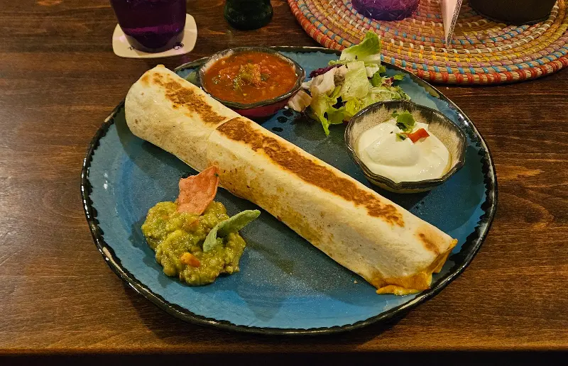 퀘사디아와 부리또 위에 뿌려진 치즈와 소스가 환상적인 비주얼을 자랑한다. 멕시칸 레모네이드와 함께 즐기면 더욱 맛있다.