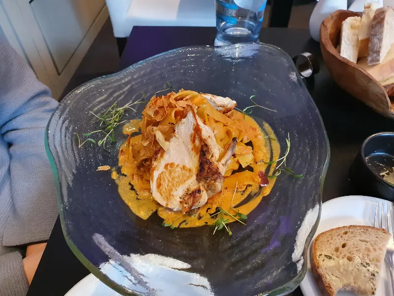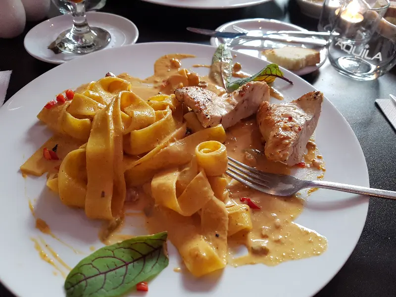 메인 메뉴를 주문하자, 빵과 애피타이저가 서비스로 제공되었다. 크림을 얹은 머랭 디저트까지, 예상치 못한 선물에 감동은 더욱 커졌다. 파스타와 스비치코바는 이곳의 대표 메뉴다. 닭고기를 곁들인 파스타는 짭짤한 간이 완벽하게 조화를 이루고, 스비치코바는 딜의 향긋함과 닭고기의 부드러움이 어우러져 환상적인 맛을 선사한다.