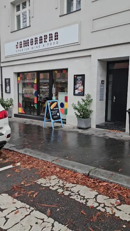 차가운 프라하의 바람을 뚫고 도착한 ‘하모나르나’. 빗방울이 촉촉하게 젖은 거리 위에 떨어진 낙엽들이 가을의 운치를 더하는 풍경 속에 자리 잡은 이곳은, 마치 스페인의 작은 골목길 어귀에 숨겨진 보석 같은 공간을 연상시킨다. 하얀 외벽에 선명하게 새겨진 ‘JAMONARNA’라는 간판과, 알록달록한 색감으로 포인트를 준 창문 프레임이 시선을 사로잡는다. 문을 열고 들어서자 따뜻한 조명과 함께 은은하게 풍겨오는 햄과 와인의 향기가 코끝을 간지럽힌다.
