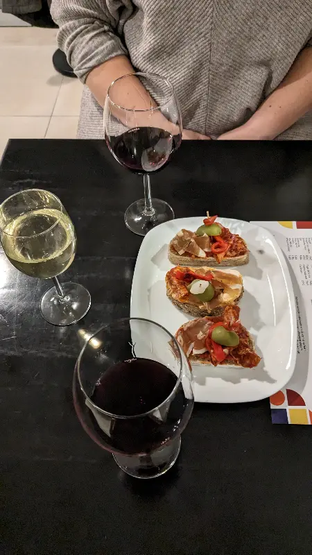 따뜻한 조명 아래, 편안하게 와인과 타파스를 즐길 수 있는 공간.