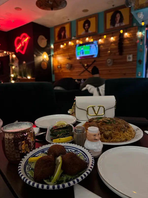 드디어 기다리고 기다리던 음식이 나왔다. 우리는 각자 다른 메뉴를 주문했는데, 하나같이 훌륭한 비주얼을 자랑했다. 그중에서도 가장 눈길을 끌었던 것은 ‘마클루바’였다. 먹음직스러운 밥 위에 부드러운 고기가 듬뿍 올려져 있었고, 독특한 향신료 향이 코를 자극했다.