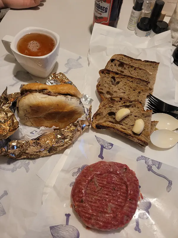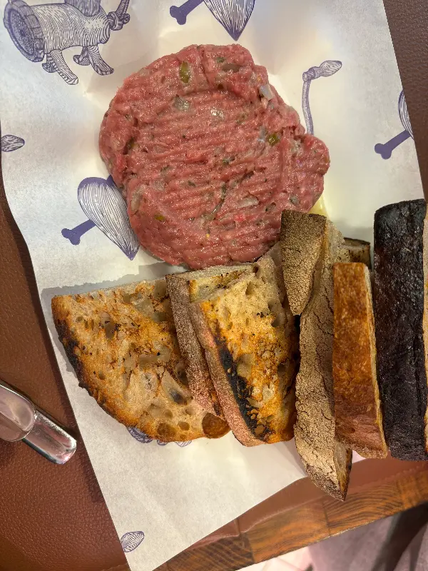 Naše maso에서는 타르타르도 꼭 먹어봐야 한다는 이야기를 듣고, 소고기 타르타르도 주문했다. 한국의 육회와는 또 다른 비주얼과 맛이었다. 갈아낸 날고기 사이에 박힌 피클이 짭짤하게 입맛을 돋우었고, 신선한 고기의 풍미가 그대로 느껴졌다. 날고기에 큰 부담이 없다면, 꼭 한번 도전해 보길 추천한다.