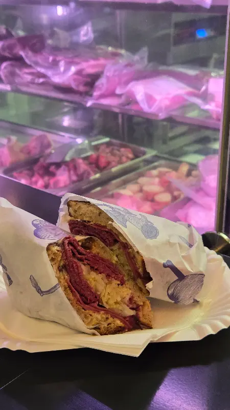 친구와 함께 방문했기에, ‘Our Hamburger’와 ‘Pastrami Sandwich’를 반반씩 나눠 먹어보기로 했다. 친구는 ‘Our Hamburger’가, 나는 ‘Pastrami Sandwich’가 더 맛있다고 느꼈다. ‘Our Hamburger’는 고기 본연의 맛을 максимально 살린 버거였고, ‘Pastrami Sandwich’는 짜고 강렬한 햄의 풍미가 인상적이었다. 각자의 취향에 따라 다른 메뉴를 선택할 수 있다는 점이 Naše maso의 또 다른 매력이라고 생각한다.
