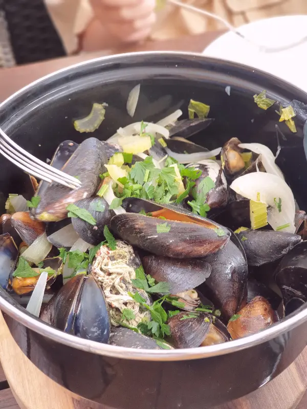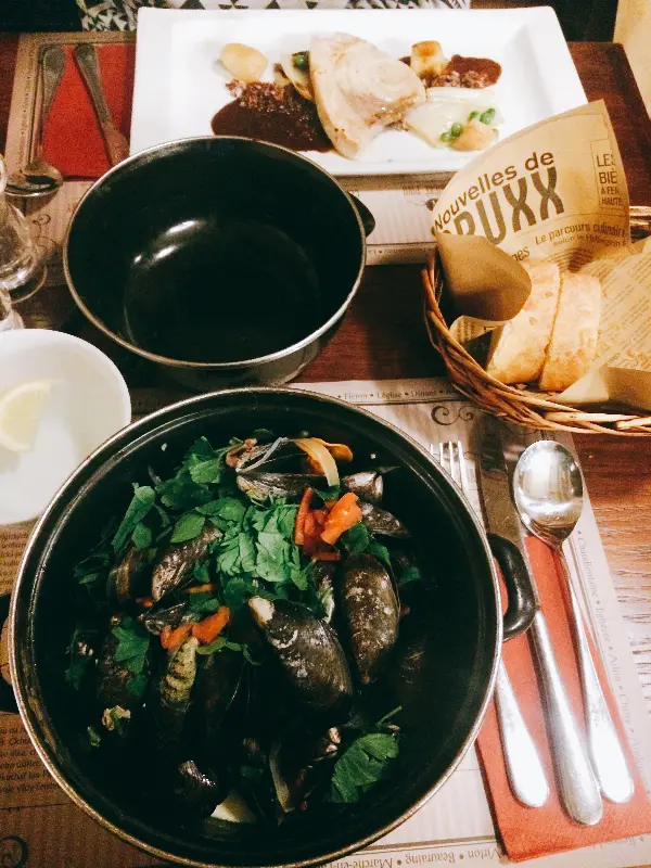 Bruxx에 오면 꼭 먹어야 한다는 홍합 요리를 주문했다. 화이트 와인으로 요리된 홍합은 국물까지 맛있다는 평이 많았다. 잠시 후, 테이블 위에 놓인 홍합 냄비에서 김이 모락모락 피어올랐다. 싱싱한 홍합과 향긋한 허브, 화이트 와인의 조화로운 향이 코를 간지럽혔다.