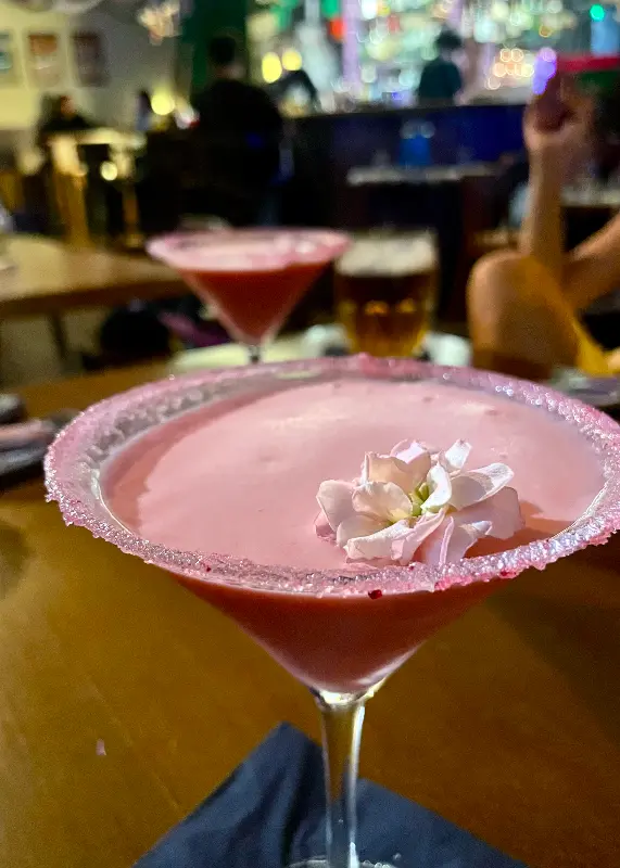 직원분의 추천을 받아 주문한 칵테일은 바로 ‘FETCH’. 잔 주변에 섬세하게 뿌려진 설탕과 칵테일 위에 살포시 얹어진 하얀 꽃잎이 시선을 사로잡습니다. 한 모금 입에 넣는 순간, 크리미하면서도 은은한 천연 딸기 맛이 입안 가득 퍼져 나갑니다. 과하지 않은 단맛과 부드러운 질감은 마치 디저트를 먹는 듯한 만족감을 선사하죠. 칵테일 한 잔에 담긴 정성과 아름다움에 감탄하며, 다음에는 어떤 칵테일을 마셔볼까 벌써부터 기대하게 됩니다.