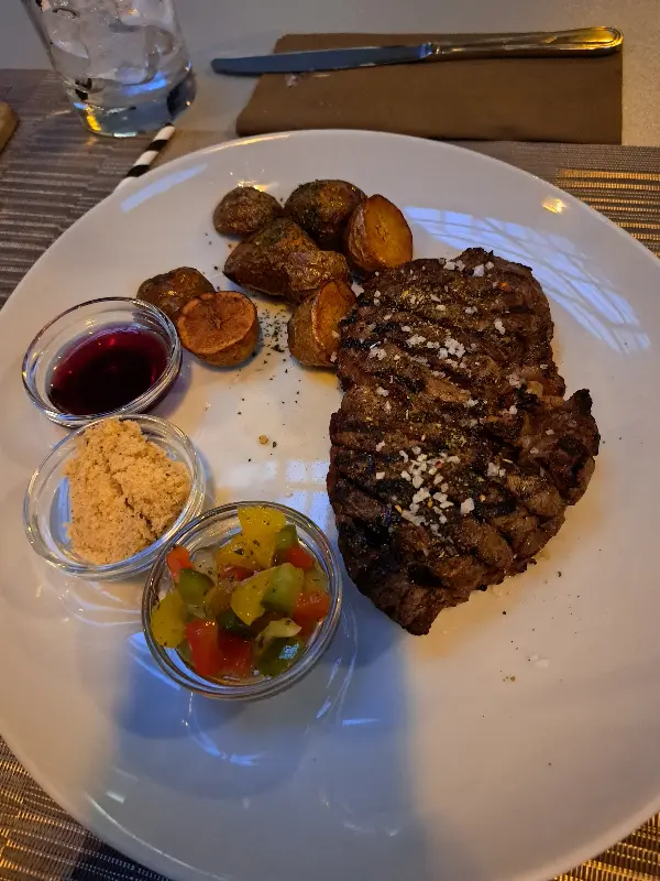 바비큐는 다양한 종류의 고기와 소시지, 샐러드, 소스 등으로 구성되어 있었습니다. 먼저 스테이크 한 점을 맛보니, 입안 가득 퍼지는 육즙과 풍미가 환상적이었습니다. 겉은 바삭하고 속은 촉촉하게 구워진 스테이크는 씹을수록 고소한 맛이 느껴졌습니다.