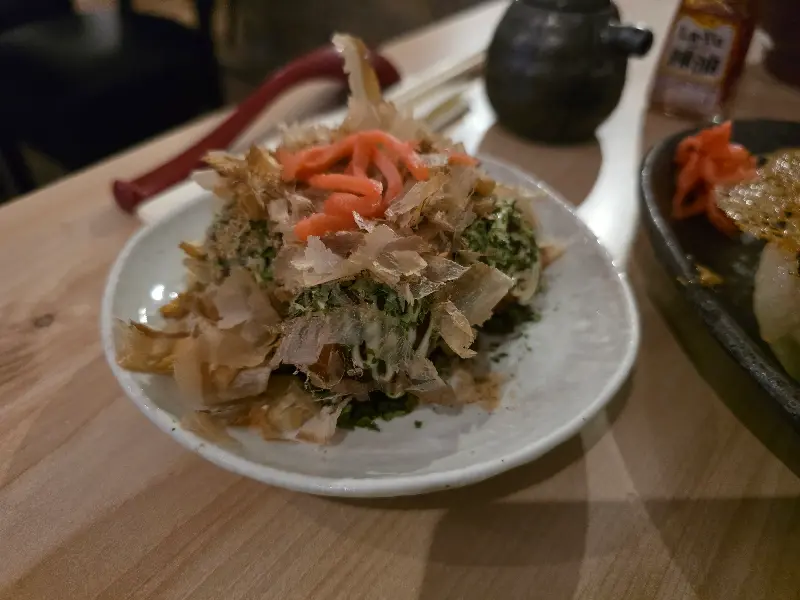 라멘만 먹기 아쉬워 가라아게와 타코야키도 추가로 주문했다. 가라아게는 겉은 바삭하고 속은 촉촉했으며, 육즙이 풍부해 정말 맛있었다. 짭짤하면서도 고소한 맛은 라멘과 환상적인 궁합을 자랑했다. 타코야키 또한 겉은 바삭하고 속은 부드러웠으며, 짭짤한 소스와 가쓰오부시의 조화가 훌륭했다.