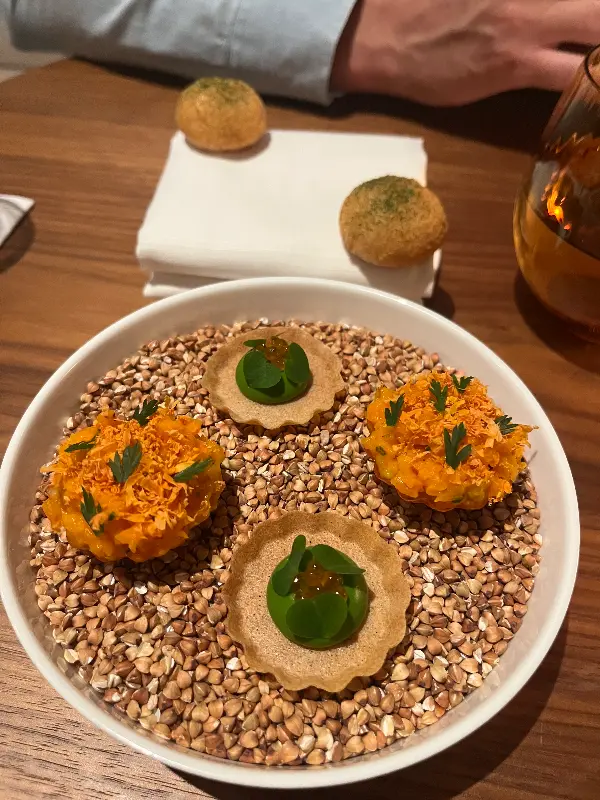 자리에 앉자 고급스러운 식기와 유리잔이 눈에 들어왔습니다. 메뉴는 코스 요리로 구성되어 있었고, 각 요리마다 정성이 느껴지는 플레이팅이 인상적이었습니다. 불필요한 장식 없이, 재료 본연의 풍미를 살린 맛은 미식가들의 입맛을 사로잡기에 충분해 보였습니다.