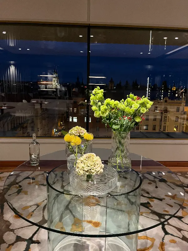 엘리베이터에서 내리자마자 눈 앞에 펼쳐지는 프라하의 전경은 숨 막힐 듯 아름다웠습니다. 특히 해 질 녘 방문하여 붉게 물든 하늘과 도시의 조명이 어우러지는 모습은 잊을 수 없는 장관이었죠. 겨울이라 뷰가 완벽하진 않았지만, 따뜻한 분위기와 친절한 서비스 덕분에 아쉬움은 금세 잊혀졌습니다. 날씨가 좋은 날에는 야외 테라스에서 식사를 즐기면 더욱 특별한 경험이 될 것 같습니다.