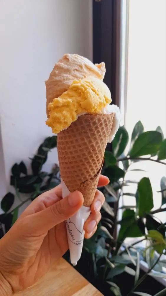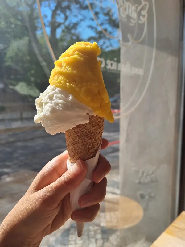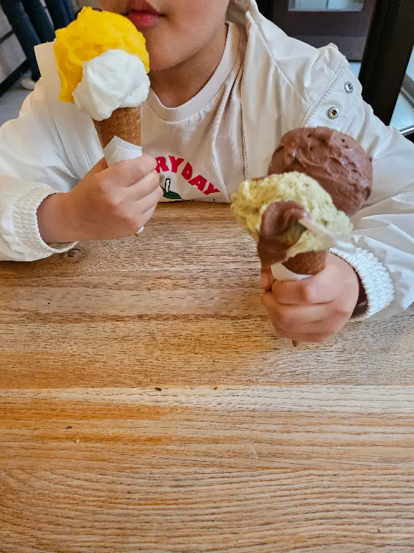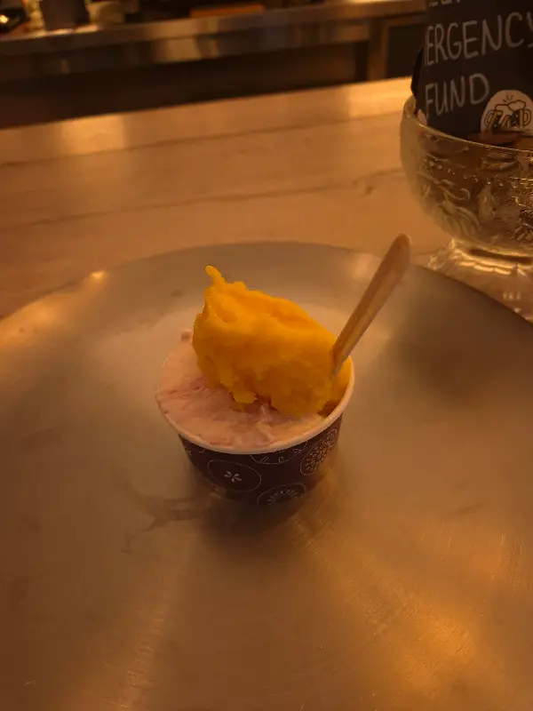 고민 끝에 망고 샤벳과 리조(쌀맛) 젤라또를 스몰 사이즈 컵에 담아 주문했다. 젤라또를 받아 들고 한 입 맛보는 순간, 감탄사가 절로 나왔다. 망고 샤벳은 인위적인 단맛이 아닌, 신선한 망고 과육의 풍미가 그대로 느껴졌다. 마치 잘 익은 망고를 그대로 갈아 넣은 듯, 입안 가득 퍼지는 달콤함이 일품이었다.