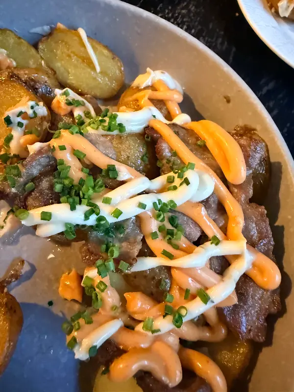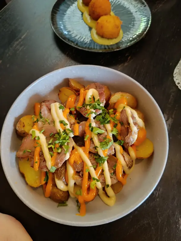 저희는 여러 가지 타파스를 주문하여 함께 맛보는 남유럽 스타일로 식사를 즐기기로 했습니다. 가장 먼저 눈에 띈 것은 ‘파드로네 고추’였습니다. 짭짤하면서도 은은한 매콤함이 맥주와 환상적인 조화를 이루었습니다. 겉은 살짝 튀겨져 바삭하고, 속은 촉촉한 고추의 식감이 일품이었습니다.