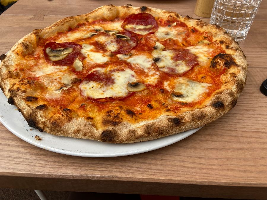 특히, 살라미와 버섯, 넉넉하게 뿌려진 모차렐라 치즈의 조화는 시각적으로도 군침을 돌게 합니다. 피자를 한 조각 들어 올리면 늘어나는 치즈의 유혹은 참기 어렵죠. 양도 많고 가격도 저렴하여 가성비까지 훌륭하니, 피자를 좋아하는 사람이라면 이곳을 강력히 추천하지 않을 수 없습니다. 얇게 썰린 프로슈토와 신선한 루콜라, 그리고 파마산 치즈가 뿌려진 피자는 이탈리아 본연의 맛을 그대로 전달하며, 각 재료의 신선함이 살아 숨 쉬는 듯한 느낌을 줍니다.
