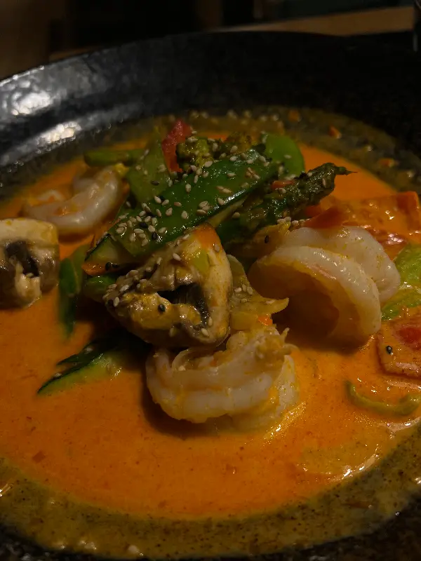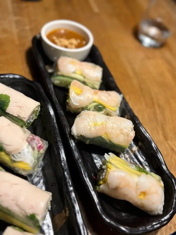애피타이저로 시킨 썸머롤(치킨 & 새우)도 정말 훌륭했다. 투명한 라이스페이퍼 안으로 알록달록한 채소와 닭고기, 새우가 비쳐 보이는 모습이 정말 먹음직스러웠다. 한 입 베어 무니, 신선한 채소의 아삭함과 쫄깃한 새우의 식감이 환상적으로 어우러졌다.