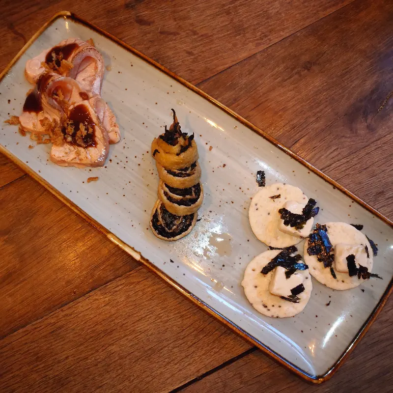 고민 끝에, 그날의 기분과 어울리는 사케 한 병과 몇 가지 타파스 메뉴를 주문했다. 이곳의 메뉴는 ‘Tapas(작은 그릇에 나옴)로 나오며 양은 가격에 비해 넉넉하지 않지만 재료들이 신선하면서 값비싼 재료들을 사용해서 가격은 수긍이…’ 라는 리뷰처럼, 신선하고 고급스러운 재료를 사용하여 정성껏 만들어진다. 1인당 4가지 메뉴를 주문하는 것을 추천한다는 리뷰를 참고하여 신중하게 골랐다.