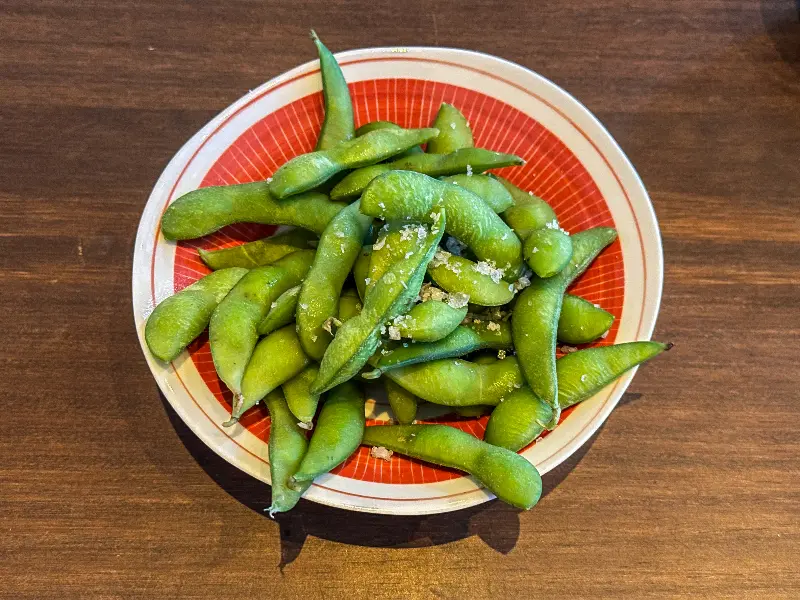 신선한 풋콩에 소금을 뿌려 간을 한 짭짤한 맛이 일품.