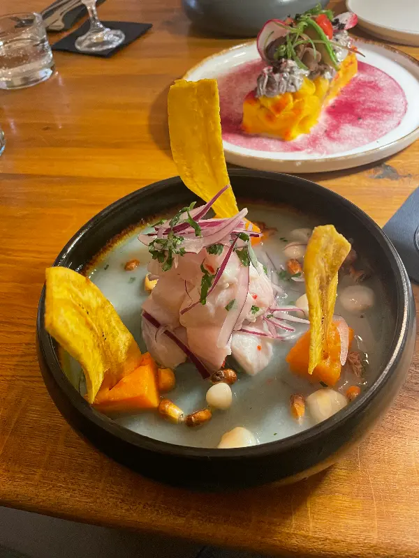 신선한 해산물과 상큼한 소스가 어우러진 세비체는 아벤투라에서 꼭 맛봐야 할 메뉴입니다.