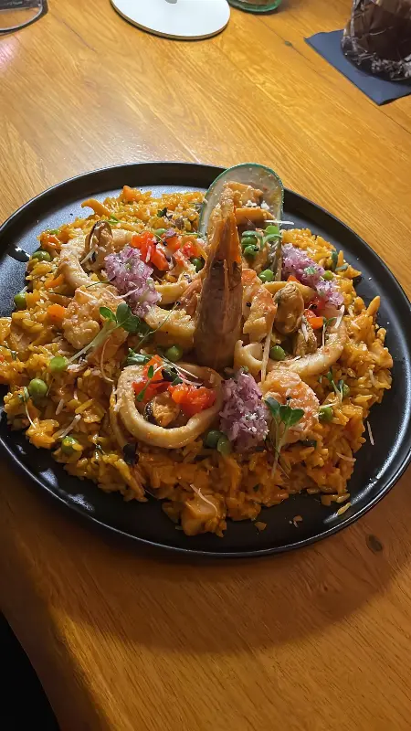 다양한 해산물과 쌀이 어우러진 아레스 마리노 쌀 요리는 풍부한 맛과 향을 자랑합니다.