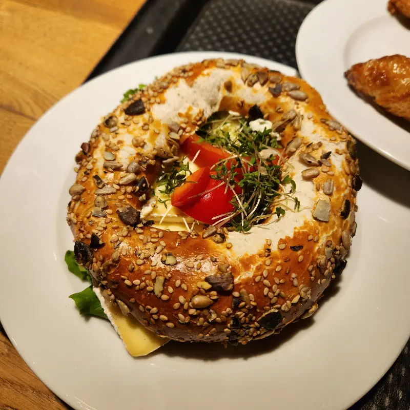 프레첼 크루아상은 이곳에서 꼭 맛봐야 할 메뉴입니다. 겉은 바삭하면서도 속은 촉촉한, 크루아상에서는 상상하기 힘든 식감이 놀라웠습니다. 짭짤하면서도 고소한 풍미는 아침 식사로 완벽했습니다. 독일에서 먹었던 빵 중 단연 1등이라고 칭찬하는 리뷰가 있을 정도입니다. 한 입 베어 물 때마다 느껴지는 풍부한 버터 향과 섬세한 결은, 숙련된 장인의 솜씨를 느끼게 해 주었습니다.