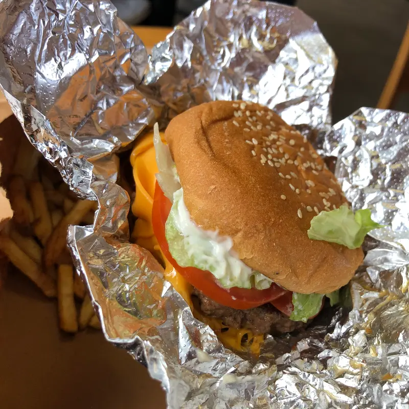 Five Guys의 가장 큰 매력은 바로 나만의 버거를 만들 수 있다는 점이다. 빵, 패티, 치즈, 소스, 토핑까지 모든 것을 내 취향대로 선택할 수 있다. 마치 나만을 위한 맞춤 정장처럼, 세상에 하나뿐인 버거를 만들 수 있다는 점이 흥미로웠다. 고민 끝에 나는 치즈 버거에 양상추, 토마토, 피클, 양파, 할라피뇨를 추가했다.