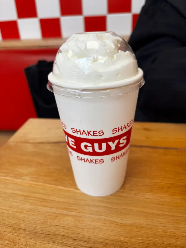 “집앞에 있는 게 아주 개꿀이며 고기 먹고 밀크쉐이크 의 버거 딱 먹으면 천국을 맛 볼 수 있다” 라는 리뷰를 보고 밀크쉐이크를 주문하지 않을 수 없었다. 진하고 달콤한 밀크쉐이크는 버거와 환상적인 궁합을 자랑했다. 특히 고소한 땅콩 맛이 느껴지는 밀크쉐이크는 Five Guys에서만 맛볼 수 있는 특별한 메뉴였다.