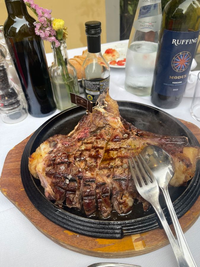1.5kg, 혹은 1.3kg에 달하는 압도적인 양은 보는 이들을 놀라게 하지만, 너무 맛있어서 멈출 수 없는 중독성 때문에 결국 두 사람이 거의 한 끼에 30만원에 가까운 금액을 지불하면서도 “돈 안 아깝게 잘 먹었다”고 평할 정도였습니다. 와인과 함께 즐기는 티본 스테이크는 피렌체에서의 마지막 밤을 최고의 순간으로 만들기에 충분했고, “하루 더 머물고 싶을 만큼 피렌체 마지막 밤 최고의 선택”이라는 극찬을 받았습니다.