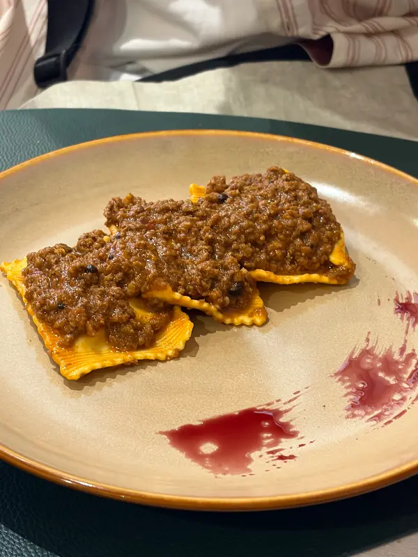 진한 라구 소스가 듬뿍 올라간 라비올리, 깊은 풍미가 인상적이다.