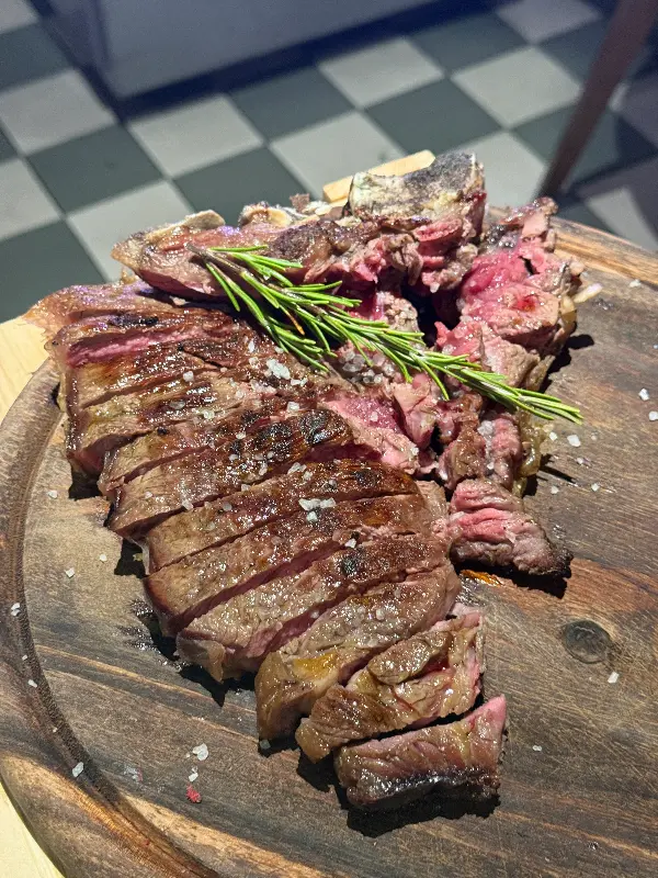 스테이크를 주문할 때 1kg이 최소 주문량이라는 말에 조금 망설였지만, 후회는 없었다. 겉은 바삭하고 속은 촉촉한 완벽한 굽기로 구워진 스테이크는 입안에서 사르르 녹아내렸다. 뼈 무게 때문에 1kg이 조금 넘었다는 이야기에 살짝 당황했지만, 맛있는 음식 덕분에 기분 좋게 넘어갈 수 있었다.